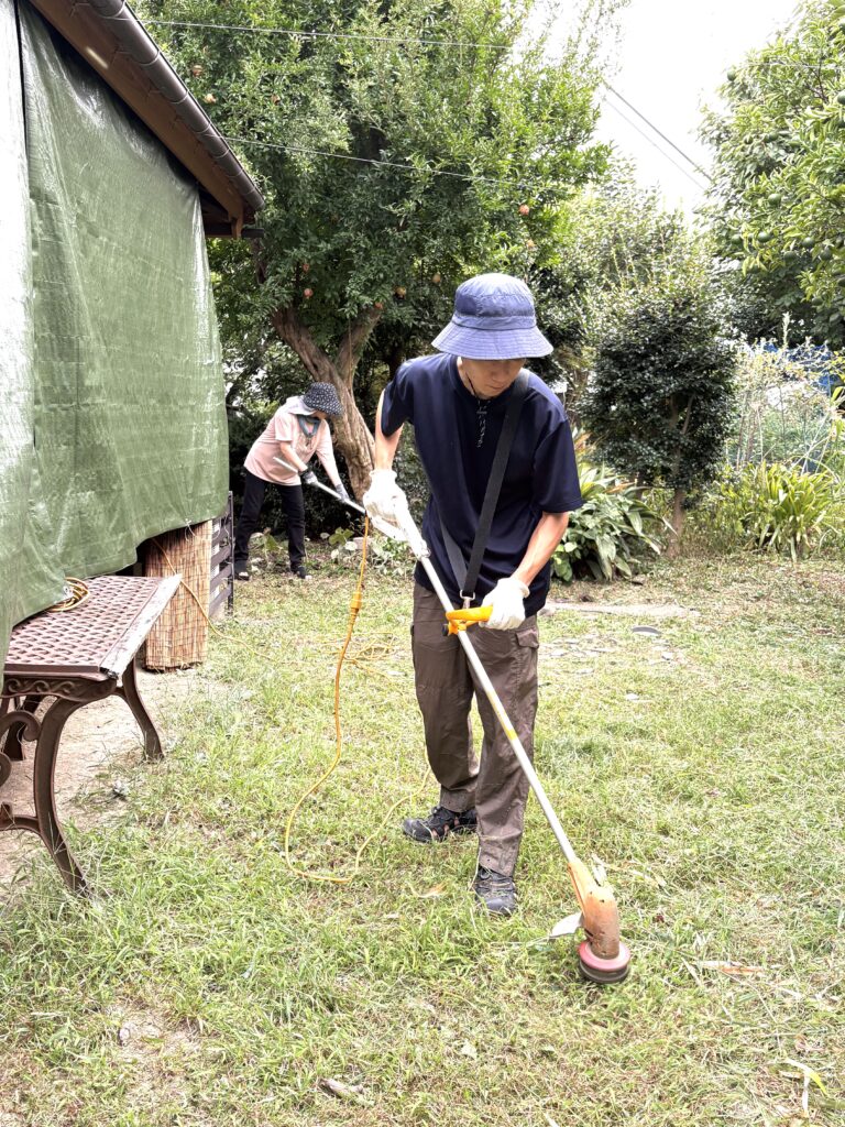 この時期にメゾンに滞在していた平石さんも参加してくださり、若手に期待が高まります。予定していた西側の広場の草払いは、ほとんど平石さんにお願いしてしまいました。