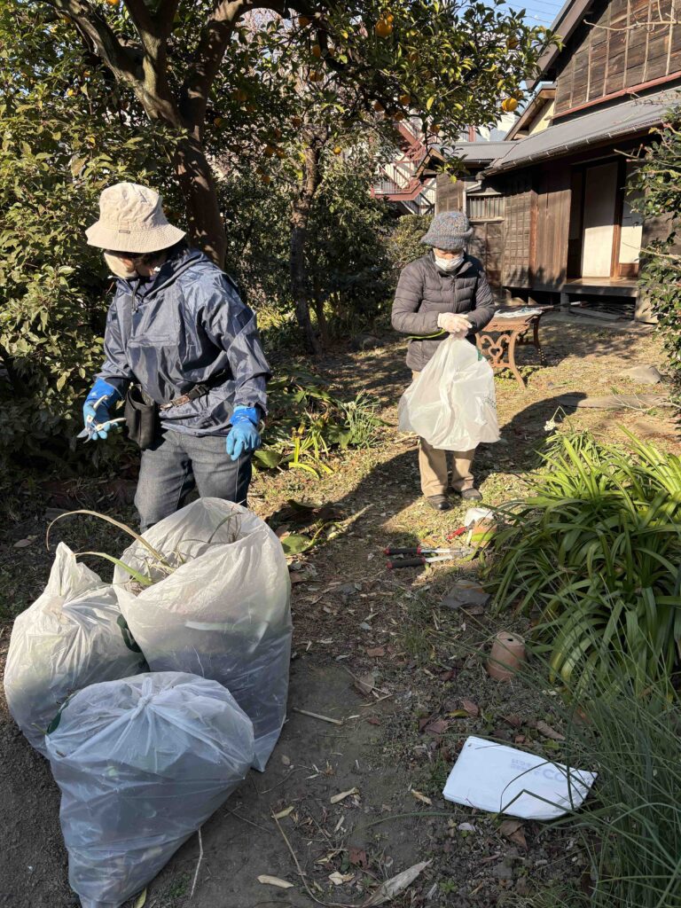 この日も風が弱く日差しがあたたかい一日でした。今回も、初めての方が参加してくださいました。ご近所の山本さんです。ご高齢ながら植物が大好きで庭仕事が大好きと伺っていた通り、私たちよりテキパキと動いてくださり、圧倒されました。