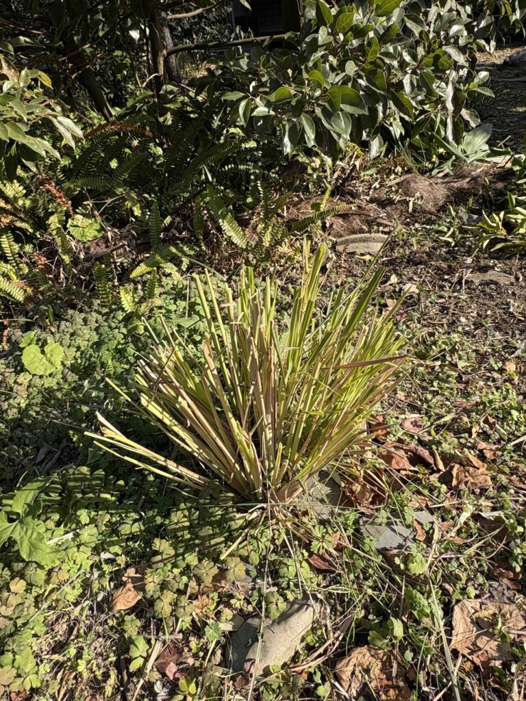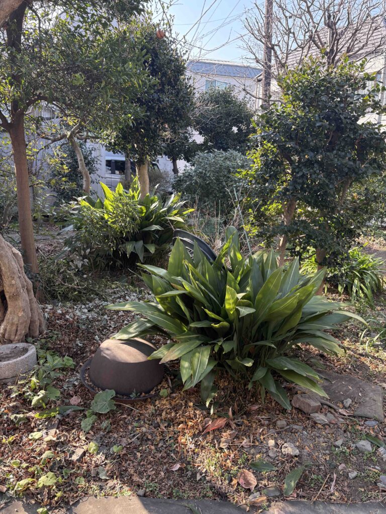 早々と春の草たちが芽吹いていますが、地面が硬くなっていて草取りには向かないコンディションなので、今回は葉蘭(ハラン)とアガパンサスを小さくしました。葉蘭は、お寿司に敷いたりお弁当の仕切りに使う葉。