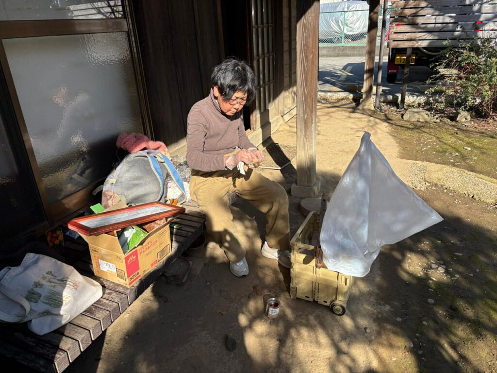 今回も新しい方が2名入会されました。それにLR会員の登さんと見学兼お試し参加の方2名、ふきの庭の常設看板の制作をお願いしている宇佐美さんも庭で作業したので、私も含め全部で12名。半年前には想像もしなかったほどのにぎやかな会になりました。