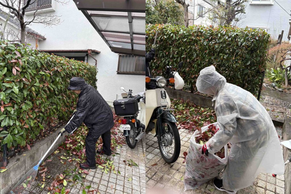 少し後に到着した新井さんには、門から古民家への通路の脇のフキを刈り取って歩きやすくするのをお願いしました。それからいつものように目についたところをキレイに手入れしてくれました。どうしたらきれいに見えるかをよく知っていらして、ありがたいです。